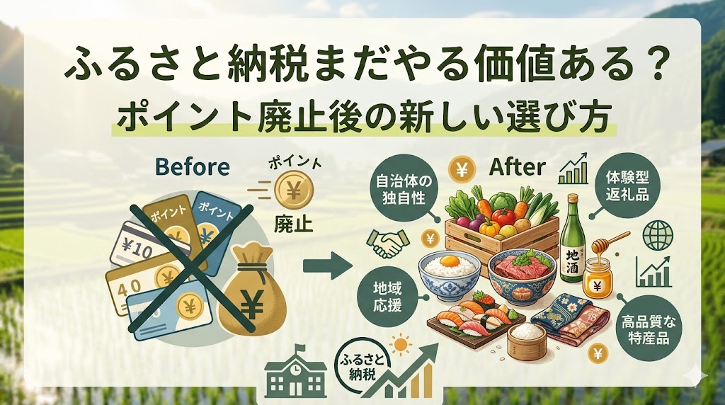 「ふるさと納税って2025年10月からポイントがもらえなくなったんでしょ?もう旨みがないんじゃ……」——そんな声、まわりから聞こえてきませんか?実は私も同じことを思っていたんですが、調べてみたら「ポイント廃止=損」というのは早とちりでした。