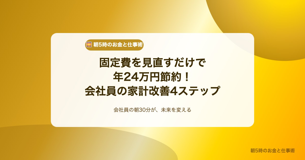 固定費は一度見直すだけで、毎月自動的に節約が続きます。今日は、会社員が実践できる家計改善の4ステップをご紹介します。
