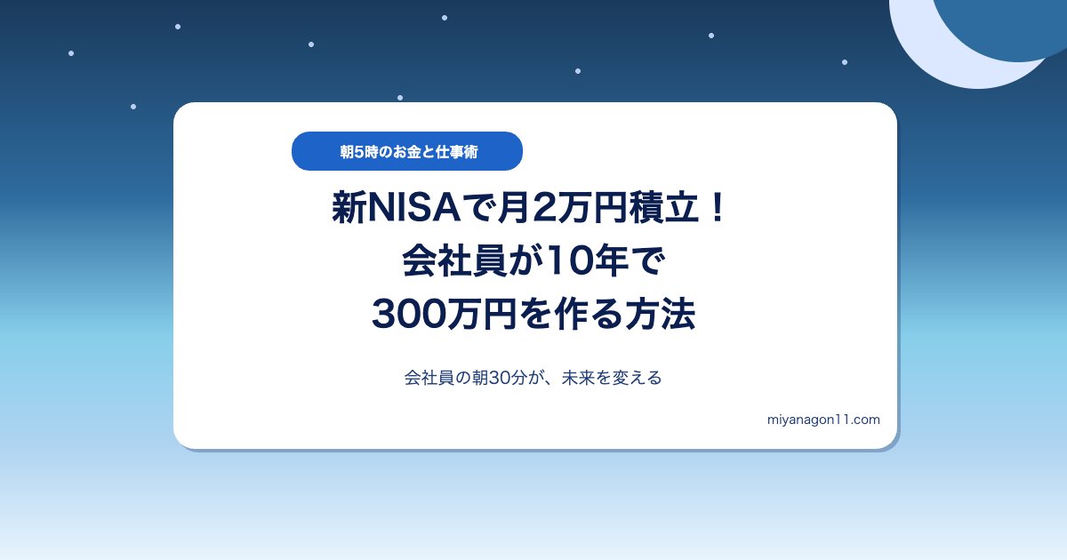 でも大丈夫です。今日から朝のルーティンに「新NISA×インデックス投資」を取り入れるだけで、10年後に大きな差がつきます。難しい知識は一切不要。会社員の方でも月2万円から始められる、シンプルな資産形成の方法をご紹介します。