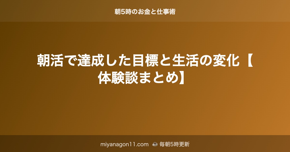 今日は「朝活で達成した目標と生活の変化【体験談まとめ】」について、実践的な情報をお届けします。