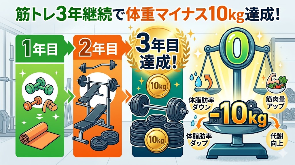 正直に言うと、最初から体重を落とすことが目的ではありませんでした。体調を整えることが最優先でした。でも結果として、3年間で体重が約10kg減りました。